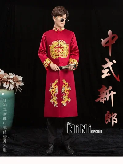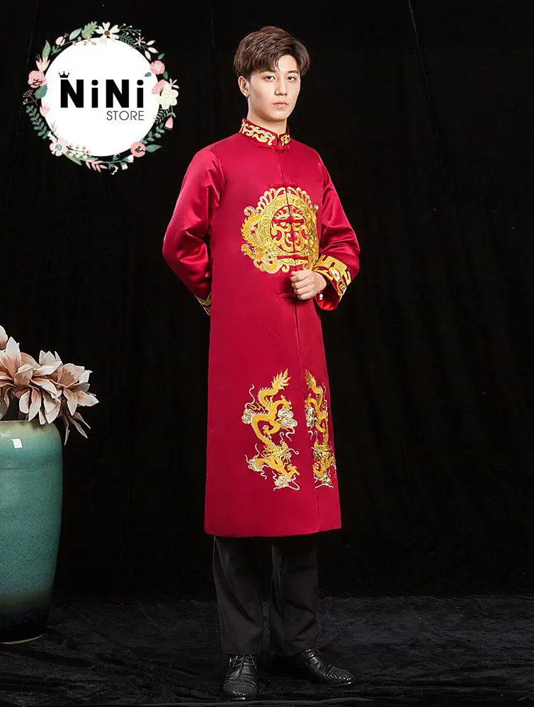 Cặp áo khỏa Trung Hoa thêu chữ hỷ vàng kim đơn giản – KN59 + KNA39