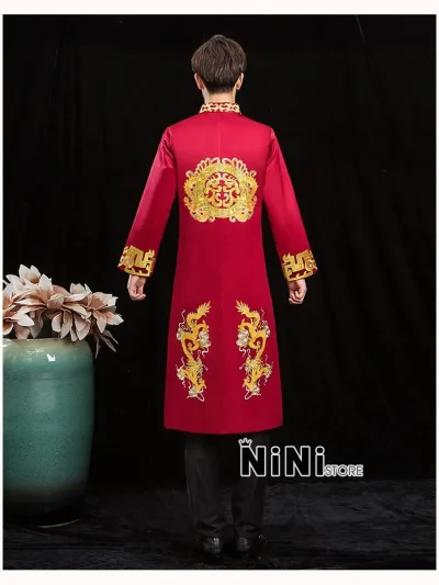 Cặp áo khỏa Trung Hoa thêu chữ hỷ vàng kim đơn giản – KN59 + KNA39